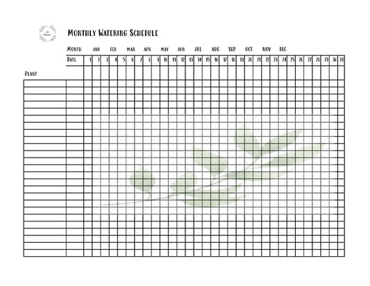 Monthly Watering Schedule
